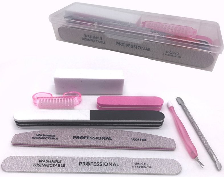 Пила с грид 100/180 и буферно блокче са ти напълно достатъчни, да. Има и буферни блокчета с грид 180, има и по-фини, вземи и от двата вида, за да си имаш. На много от тях и не пише с какъв грид са. Показаният комплект ти е напълно достатъчен, но силно агитирам да не ползваш инструмента за рязане на кожички от него. Ако нямаш, вземи си клещи.