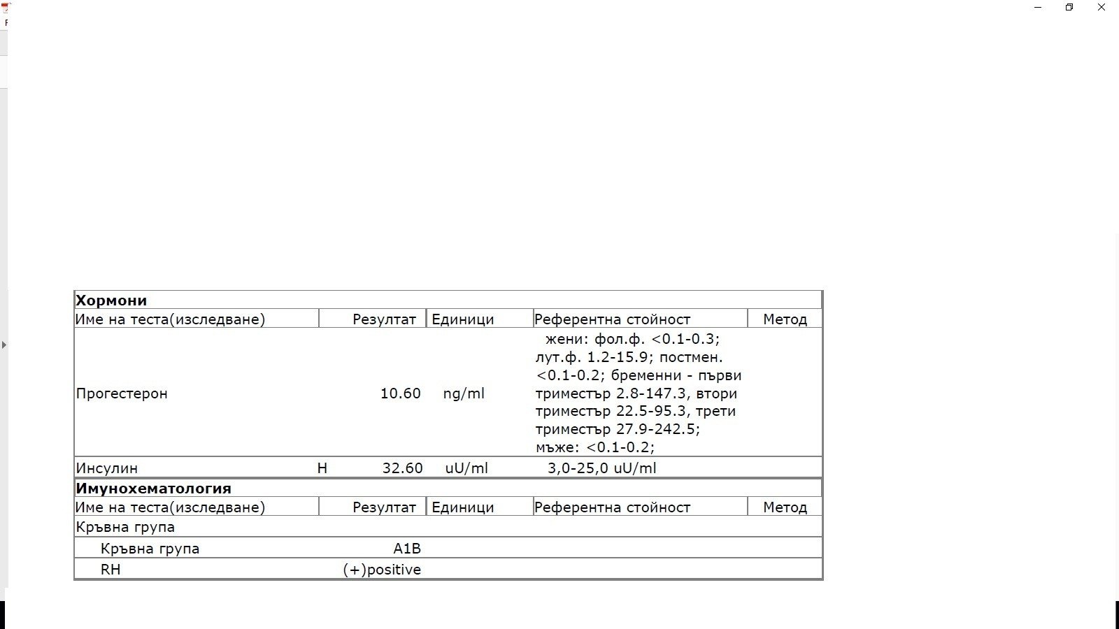 Резултатите от изследването на TSH и FT4 показват, че TSH е повишен (2,448 uIU/ml), което предполага хипофункция на щитовидната жлеза. Освен това нивата на FT4 (1,15 ng/dl) са в нормални граници. Това може да означава недостатъчно количество тиреоиден хормон в кръвта, което може да доведе до симптоми на хипотиреоидизъм.