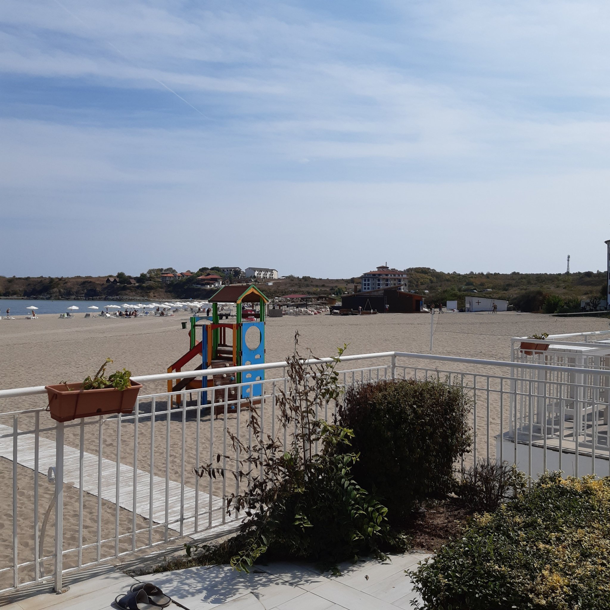 Плаж-винаги имаше шезлонги,който се подреждаха чинно ,но до там,силно мръсни и не подържани.Самия пясък също силно мръсен и неподържан.Морето-тук обаче всикчо беше ок,чисто и бистро,нямаше водорасли и други гадинки,но пък миналата година не беше така.Така че всичко е до късмет.