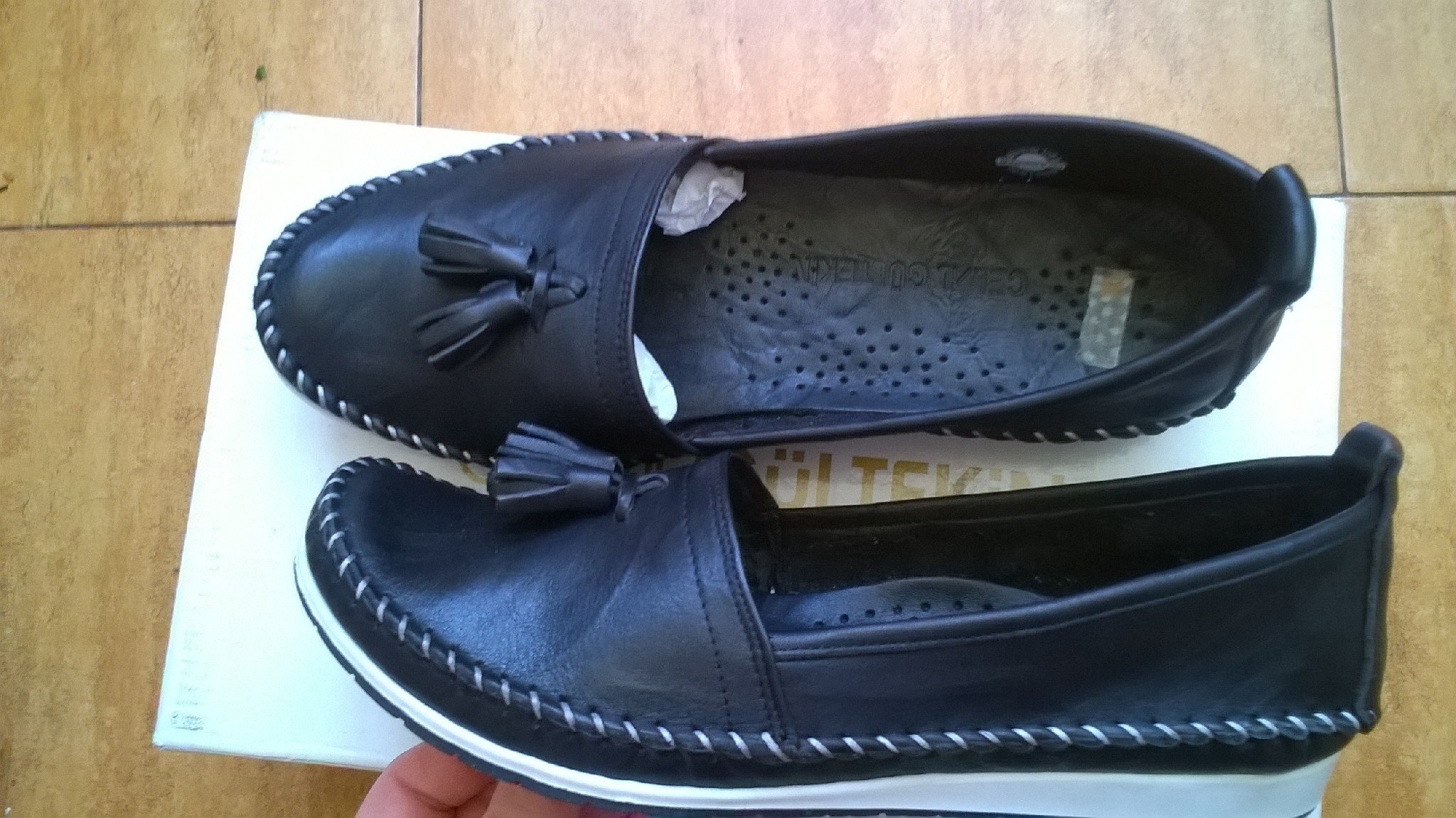 Дамски мокасини, естествена кожа отвън и отвътре, олекотена и ортопедична подметка, 38 номер, но са умалени, отговарят на 37 номер, 24 см стелка. Много леки и удобни. Взех ги от намаление, но не станаха за съжаление.