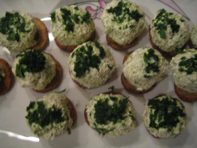 Броколите се пасират и всичко се омесва много хубаво без магданоза.Оформят се топчета които се украсяват със ситно нарязан магданоз!