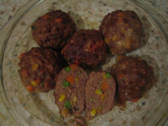 Всичко се омесва оформят се кюфтета и се пекат около 30 минути при 180 градуса