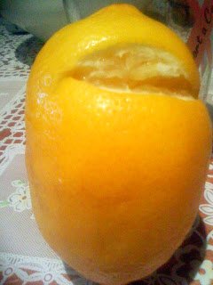 Сервирах с лимон който с длани го търкалях по масата да се отлепи кората и направих една цепка от единия край ето така:
