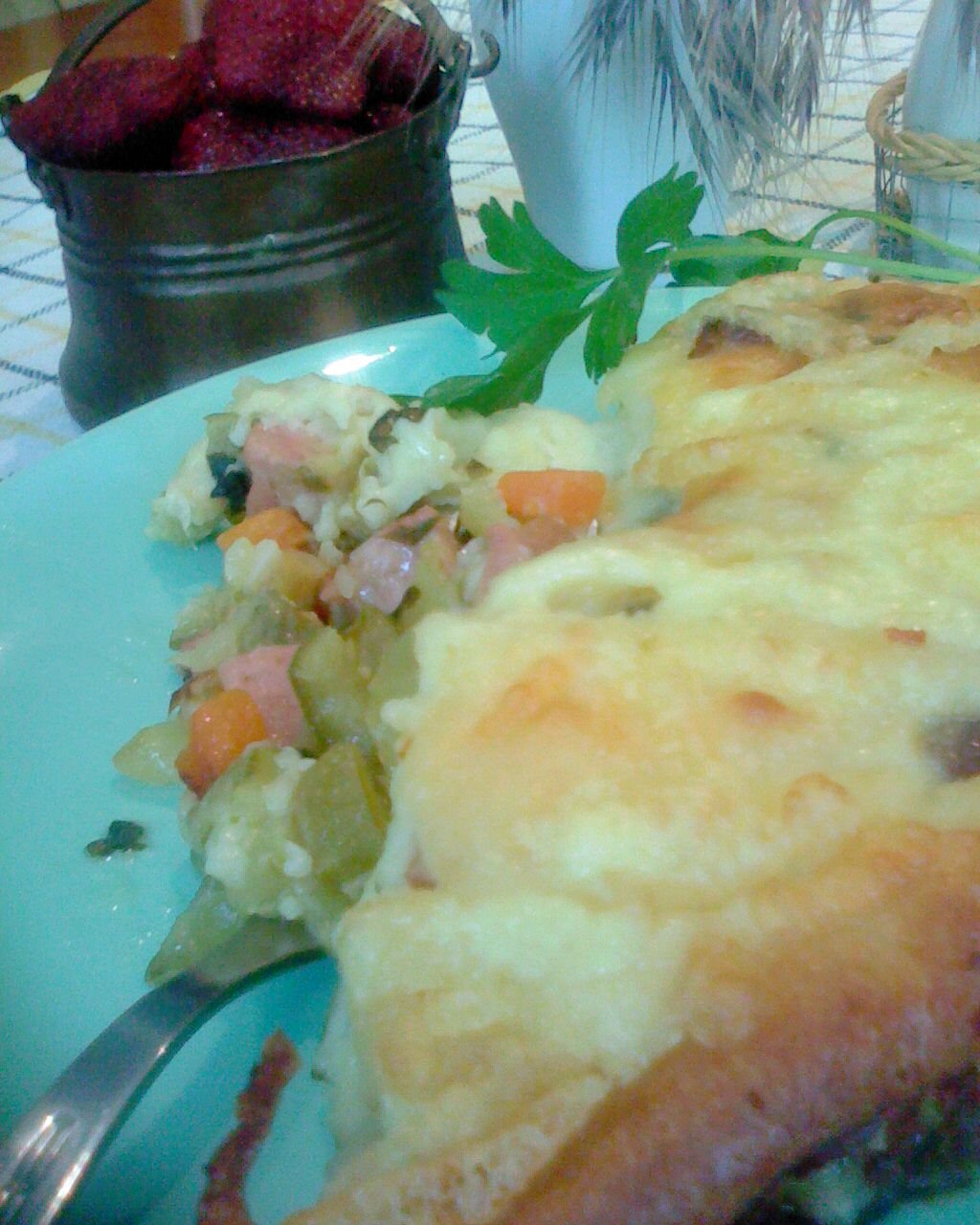 Когато се изпека го полях със заливката и пак запекох до готовност.