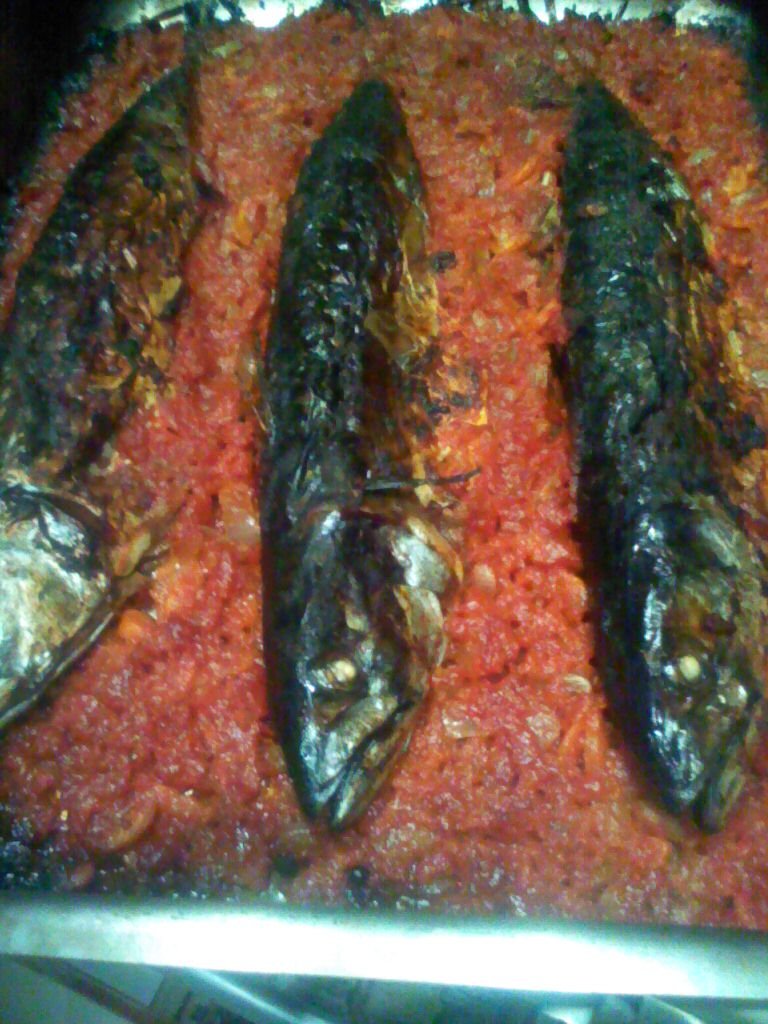 Измих и изчистих скумрията и цяла я сложих в подходяща тава където ще се пече.