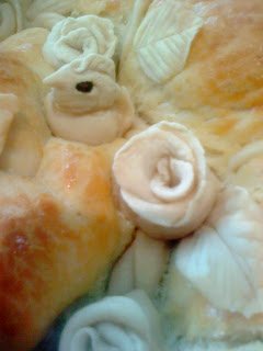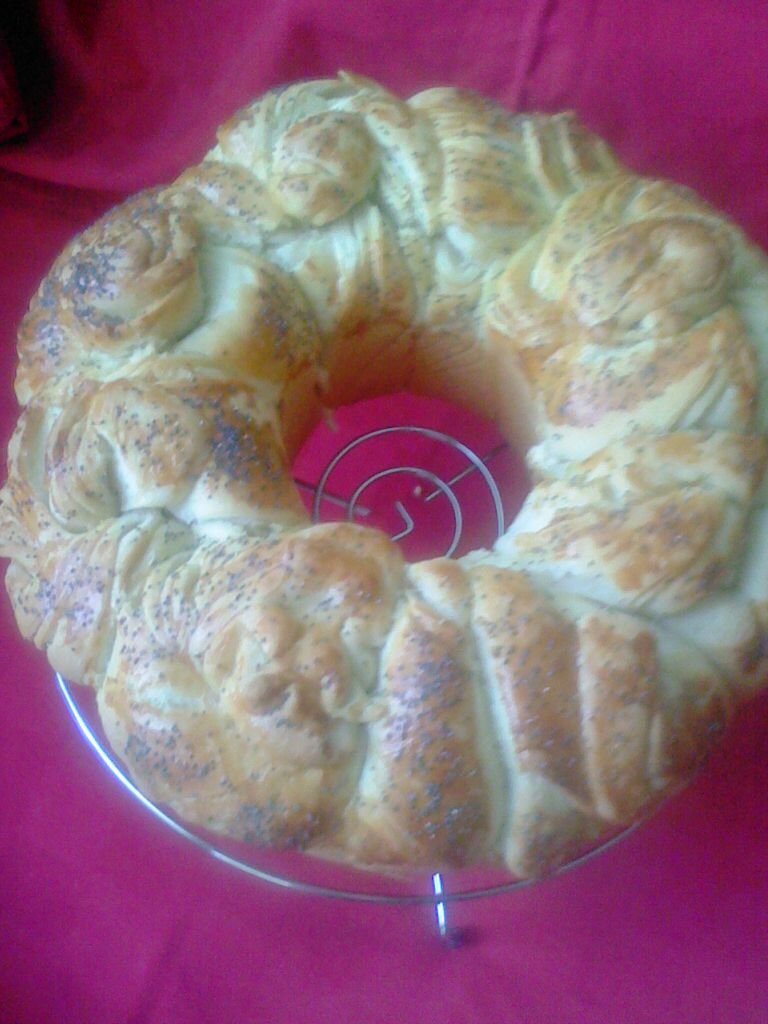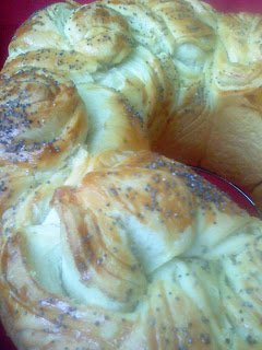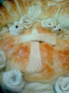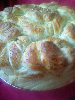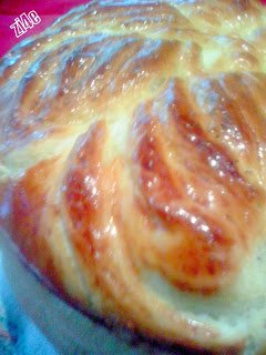 Когато втаса мажа с жълтъка,малко прясно мляко и зехтин за да лъска.