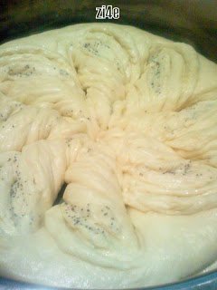 Така ги слагам една върху друга като между тях е намазано с мазнината А НА ЕДНАТА ОТ ТЯХ СЛАГАМ И МАКОВО СЕМЕ.