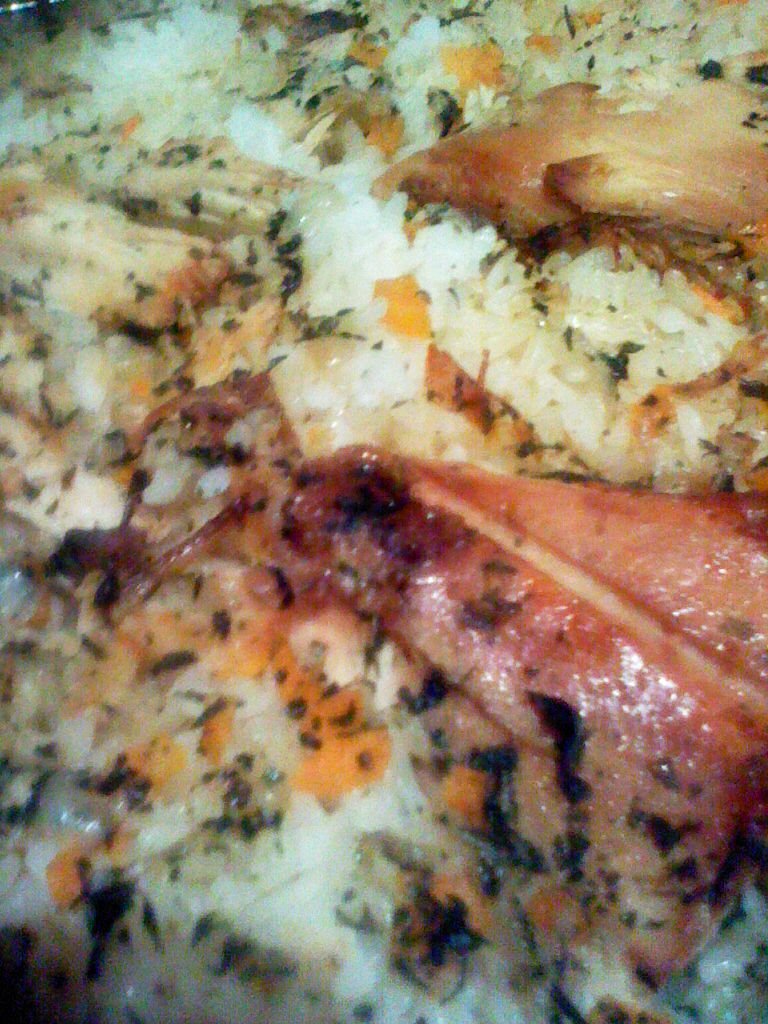 Когато е готово вадя и завивам тавата с опаковъчно фолио и с кърпа .Ориза става много хубав всяко зърно се брои.