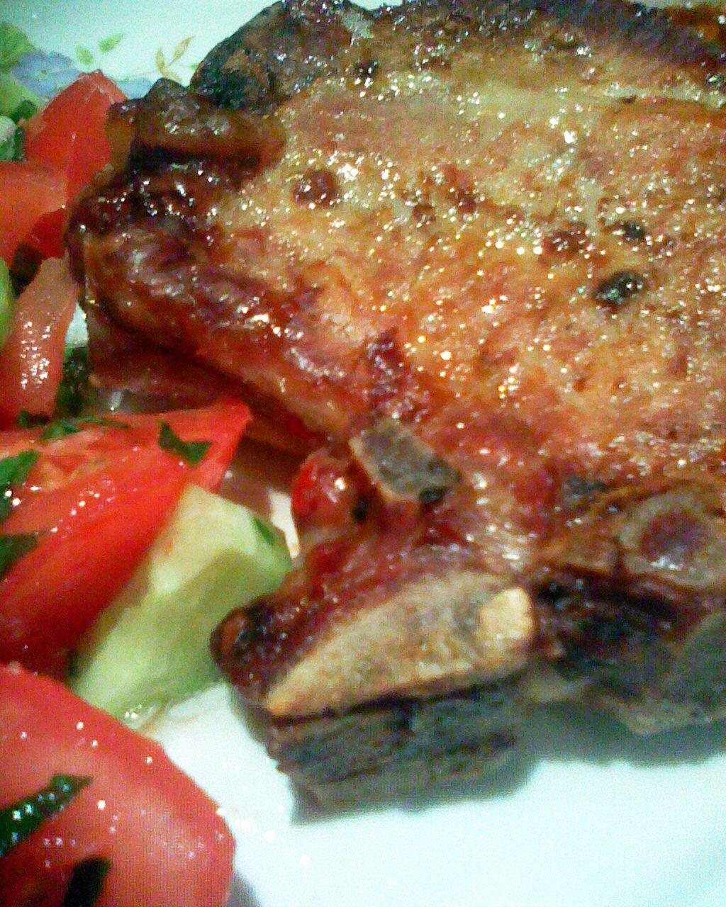 После се бърка,докато се редуцира до желаната гъстота(като разредена боза) и се намазва месцето,като се запича на грила още малко.