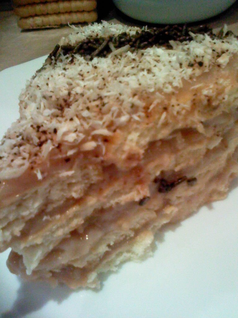 В тавичка се нареждат един ред от обикновените бисквити, и отгоре се излива нишесте, след това отново бисквити и отново нишесте.
