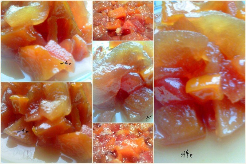 *Пекох във фурната на 200 градуса ,докато се изпари водата и се сгъсти!