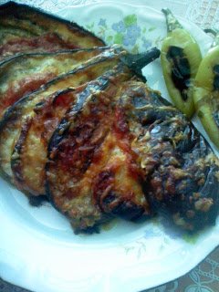 По между пластовете му осолих и сложих домат на колелца,и кромида на колелца.