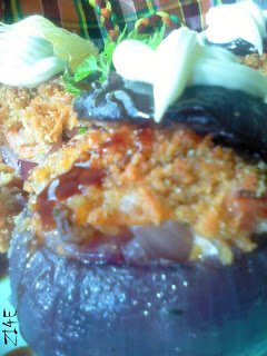 От нищо, нещо се получи, много хубави станаха червените кромиди.Наръсеният кашкавал с галета отгоре стана суперски,а поляти със сладко кисел сос и мойонеза мммммм..., абе опитайте голяма вкусотия ще си хапнете.