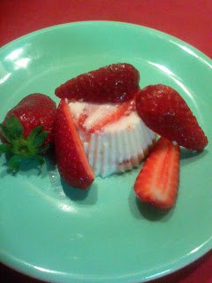 Добавям и подсладителя и нарязани на кубчета ягоди и пак разбърквам хубаво.