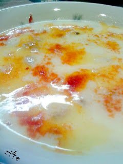 Върнах в бульона нарязаното месце , и сипах прясното мляко.