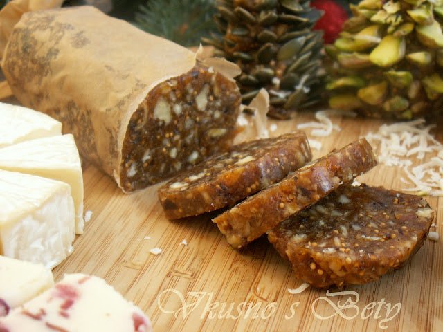 Бонбонки от сушени плодове и ядки- правя ги често, а в случая за поднасяне със сирена, но са си м ного вкусни на топчета, оваляни в кокос или любими ядки.