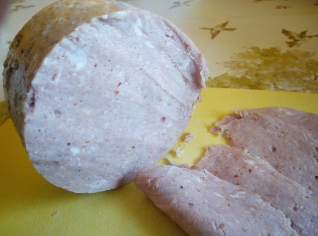 Приготвя се силна отвара от подправките. В тенджера с 300мл. вода сварете подправките заедно със солта, докато течността се редуцира до 100мл. Прецежда се и се оставя да се охлади. 1/3 от месото се нарязва на кубчета, а останалите 2/3 се смилат. Смесва се с отварата и захарта. Следва стандартната процедура – омесване, престой в хладилника и варене в шунковара.